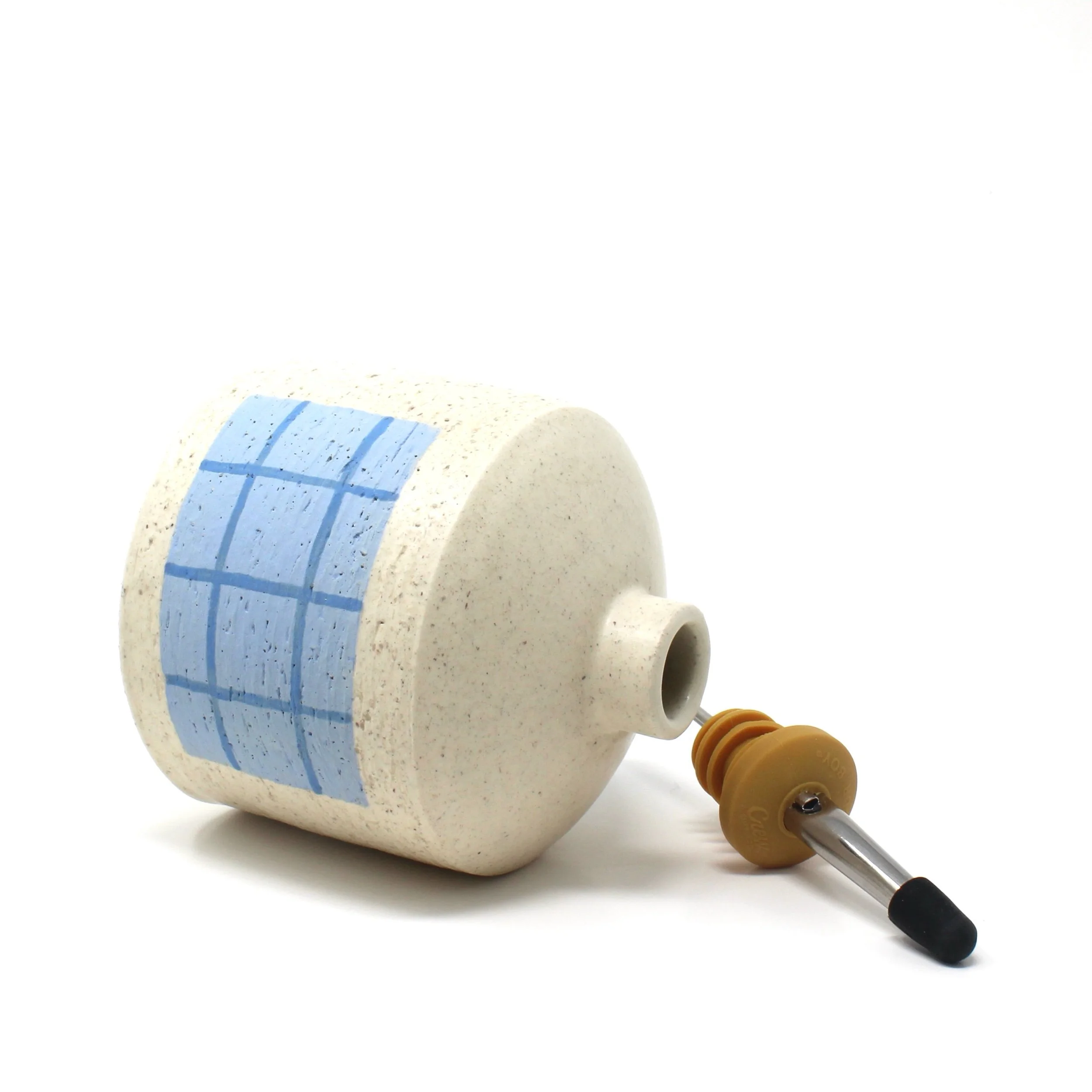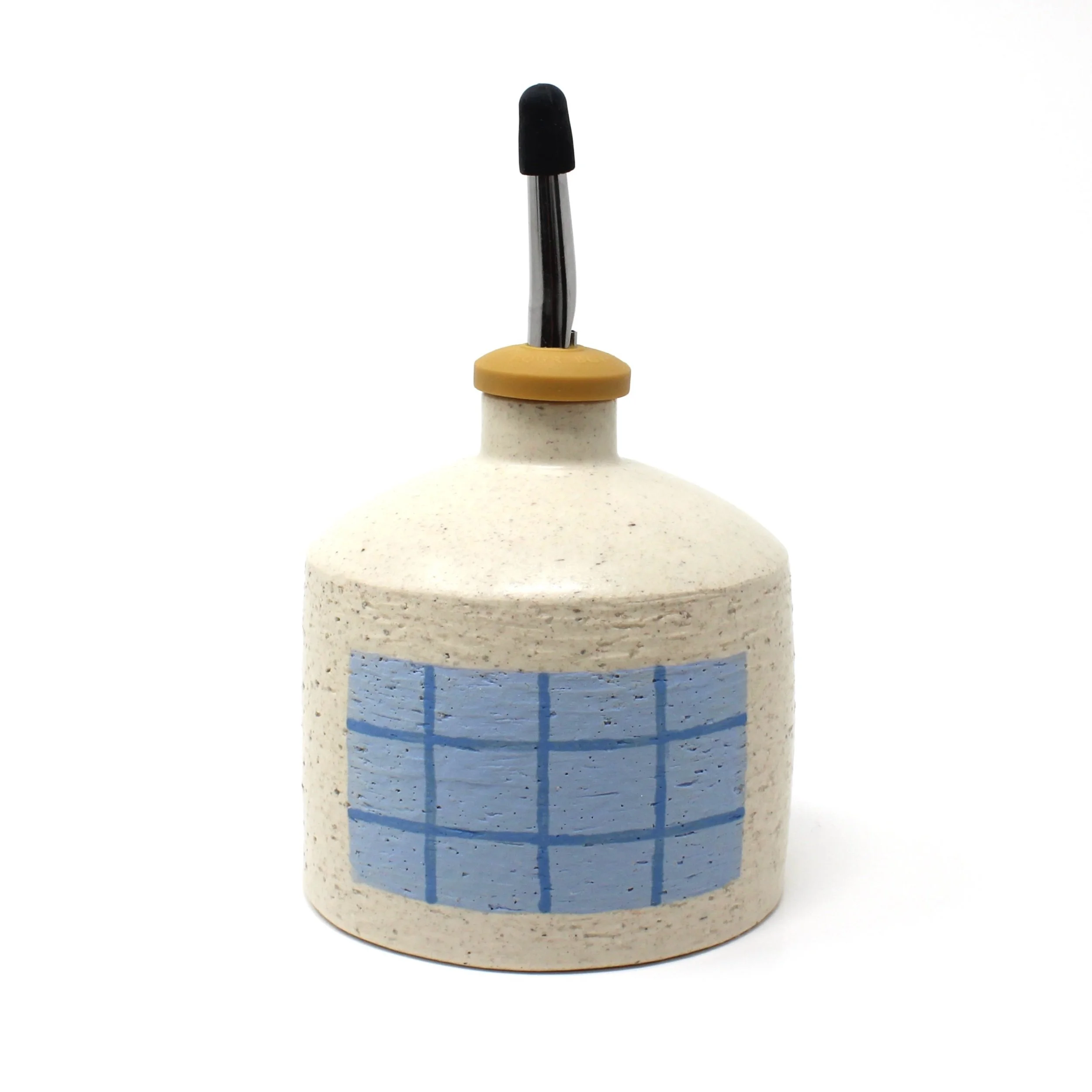 Image 1 of 2 Image 2 of 2 Blue Plaid Oil Bottle $78.00 Thrown stoneware bottle with a blue plaid design on two sides, finished with a clear satin glaze.4.5” x 4” Add To Cart Added! Thrown stoneware bottle with a blue plaid design on two sides, finished with a clear satin glaze.4.5” x 4”